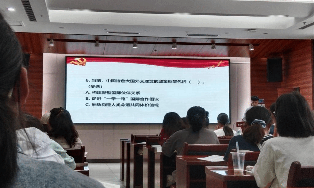 本周理论学习的最后环节主要围绕中国中亚峰会的内容,采用知识竞答方式开展,并将最新一期的《求是》杂志作为奖品发放给同学们。