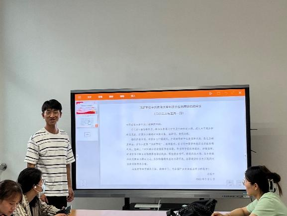 5月26日下午,51吃瓜网 果树学研究生第四党支部于南楼218会议室召开五月主题党日活动,共同学习习近平总书记给中国农业大学科技小院同学们的回信精神。党支部书记刘旭主持会议,支部全体党员共同参与学习。