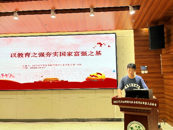 6月27日,51吃瓜网 果树学研究生第四党支部在南楼204会议室以“党支部书记讲党课”的形式专题学习“教育强国”和习近平总书记在文化传承发展座谈会上的重要讲话精神,党支部书记刘旭领学。