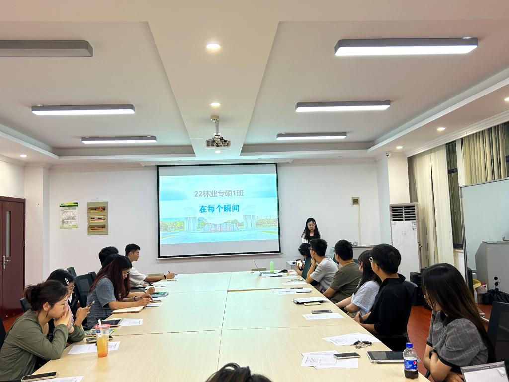 林业专硕1班学班李小惠以“不说永远 在每个瞬间”为主题,讲述了自己与整个班级相遇相识相伴的过程,希望可以与各位小伙伴们共同关注世界和浩瀚宇宙,追寻与成长,保持好奇和热爱,奔赴山川。专硕2班学班王胜娟以“热爱可抵岁月漫长”为主题,再次开启了一年前大家线上见面会的故事,拔河比赛中啦啦队有力地呐喊,队员全力的表现体现着大家的并肩作战,不是所有的热爱都显而易见,但所有的力量都值得被看见。未来愿大家都怀有赤诚之心,保持热爱,奔赴山海,不断追寻。