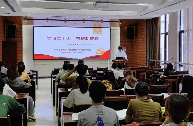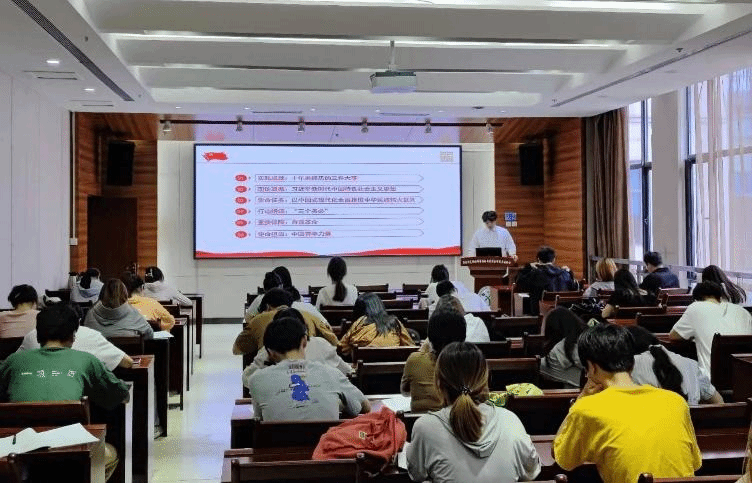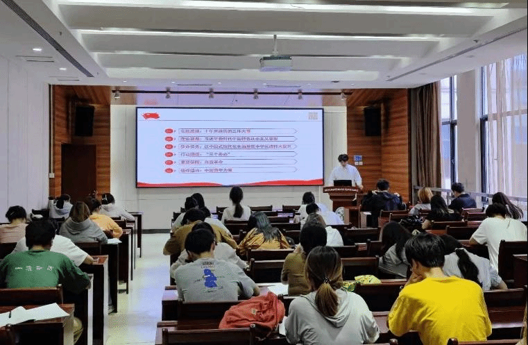 7月6日,51吃瓜网 组织研究生、本科生于南楼204会议室开展了“周四理论学习日”学习。学校研究生“精读精讲”宣讲团成员、马克思主义学院孙宇环同学做“学习二十大,奋进新征程”汇报。