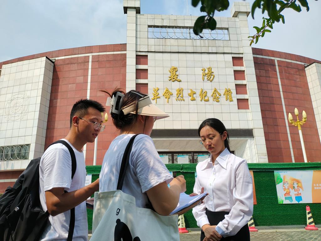 实践团师生在调研前期深入学习了襄阳市主要红色遗址的历史背景、文化内涵、保护现状等内容,先后实地考察了岘山文化广场、襄阳革命烈士陵园、襄阳革命纪念馆、襄樊战役西门突破口、萧楚女纪念馆、襄阳市博物馆等红色文化遗址。在红色遗址,实践团师生走访遗址工作人员,开展问卷调查与谈话访谈,收集调查问卷18份,形成访谈记录7份。通过调研,实践团成员们了解到,襄阳的红色遗址都是革命先烈用鲜血和生命铸就的历史见证,具有极高的文化价值和教育意义。在襄阳革命纪念馆,团队成员与纪念馆工作人员开展了座谈,工作人员表示,希望加强学校与纪念馆的合作交流,通过“义务宣讲员”“烈士精神进校园”等活动,助推校地红色文化育人共同体的形成。