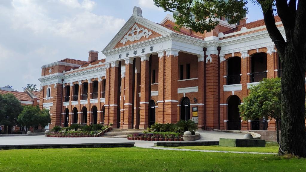 第一站成员们来到了辛亥革命纪念馆,正对纪念馆的门口,是伟大的“中华民国国父”孙中山先生的雕像。他深邃的目光望向远方,忧国忧民的每一个痕迹都深深刻上了他的容颜。纪念馆内,三幢典型民国建筑风格小楼围在一起,主楼前盛开的花朵将砖红的墙面映衬的格外美丽。辛亥革命武昌起义纪念馆又叫做红楼,它不仅仅是建筑上的红,更是代表了先进革命人士的鲜血和武昌起义红色精神的永驻。这些小楼里,展示着辛亥革命武昌起义的种种遗迹。一张张红木办公桌整整齐齐地排列,桌上的笔筒等用具仍保持着当年的样貌,成员们仿佛看到了他们在这里呕心沥血的情景。