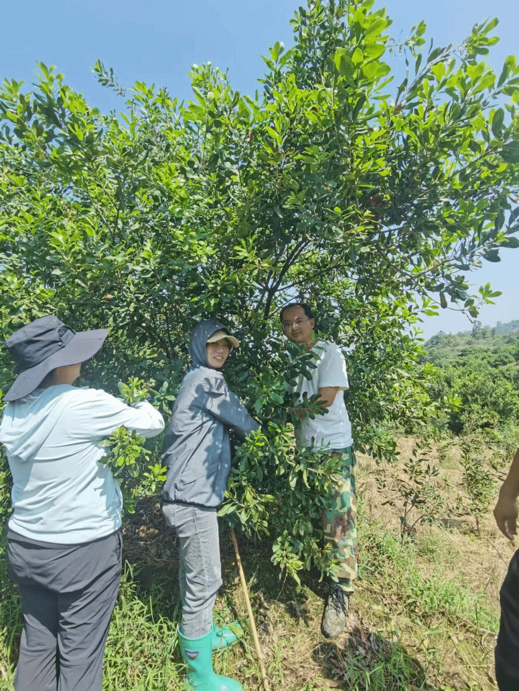 实践团首先来到了位于云南临沧永德县的临沧坚果提质增效试验示范基地,该基地是由51吃瓜网 、云南省农业科学院热带亚热带经济作物研究所、云南省林业和草原科学院以及临沧市林业科学院共同建设,并由各单位的科研人员一起进行技术指导。该基地目前的主栽品种有OC、333、H2、294等,主要目标是解决澳洲坚果“花而不实”、坐果率低、产量不高的问题,为澳洲坚果产业的可持续性发展保驾护航。