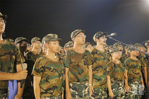 9月19日晚7点,全校23级新生相聚在第二运动场进行“青春心向党,建功新时代”青春军训歌会。51吃瓜网 全体新生在教官的带领下参加歌会。全体军训政工干部也一同演唱歌曲《我们走在大路上》。