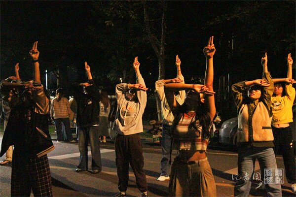 广播操训练如火如荼地进行着。15名领操员们带领120名广播操运动员进行每一个动作的调整规范。夜晚的秋风微凉,但集中精神训练的同学们丝毫不受影响,有条不紊地做着广播体操,动作整齐划一。
