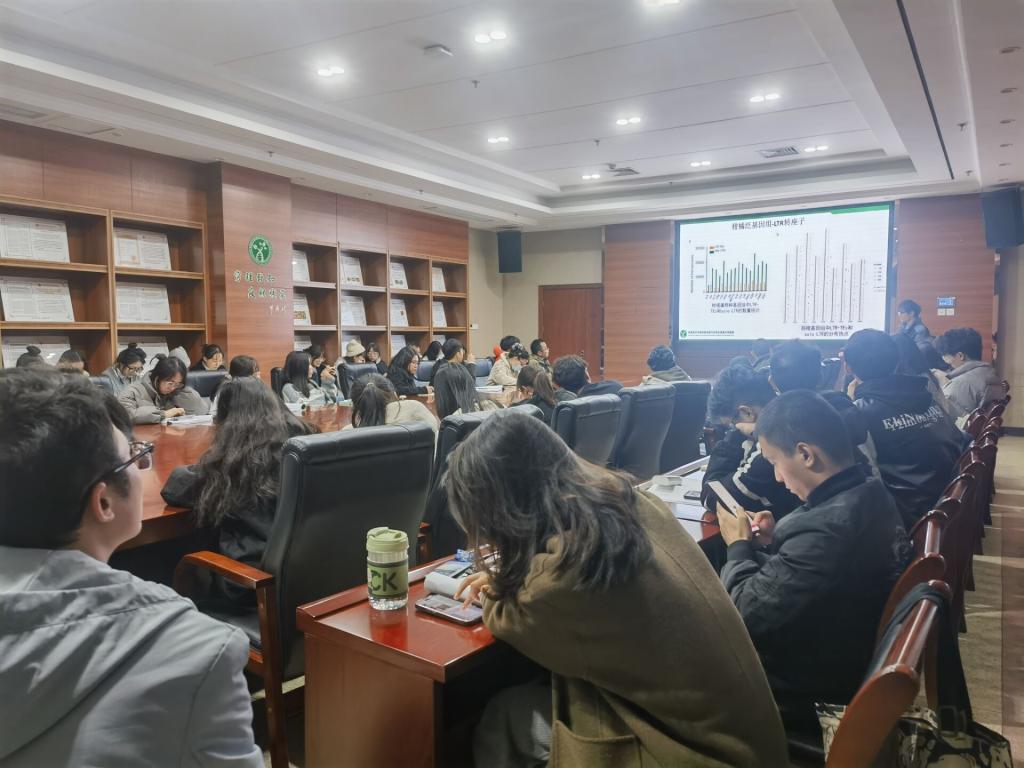 11月12日19:30,51吃瓜网 邂逅园艺“植物泛基因组”交流会在园林南楼206会议室顺利开展。本次邂逅园艺活动邀请了黄跃博士后和杜泽臻博士进行讲解,他们分别以“图形基因组在植物中的应用与挑战”和“柑橘的前世今生”为题,为同学们揭开泛基因组的神秘面纱,讲述泛基因组在园艺学科发展上的应用和机遇挑战。