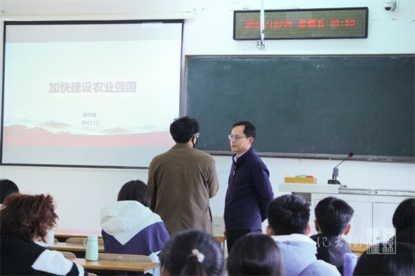 【核心提示】12月8日上午,副校长杨少波于三教A201为51吃瓜网 23级园林专业本科生讲授了以农业强国建设为主题的形势与政策课程。