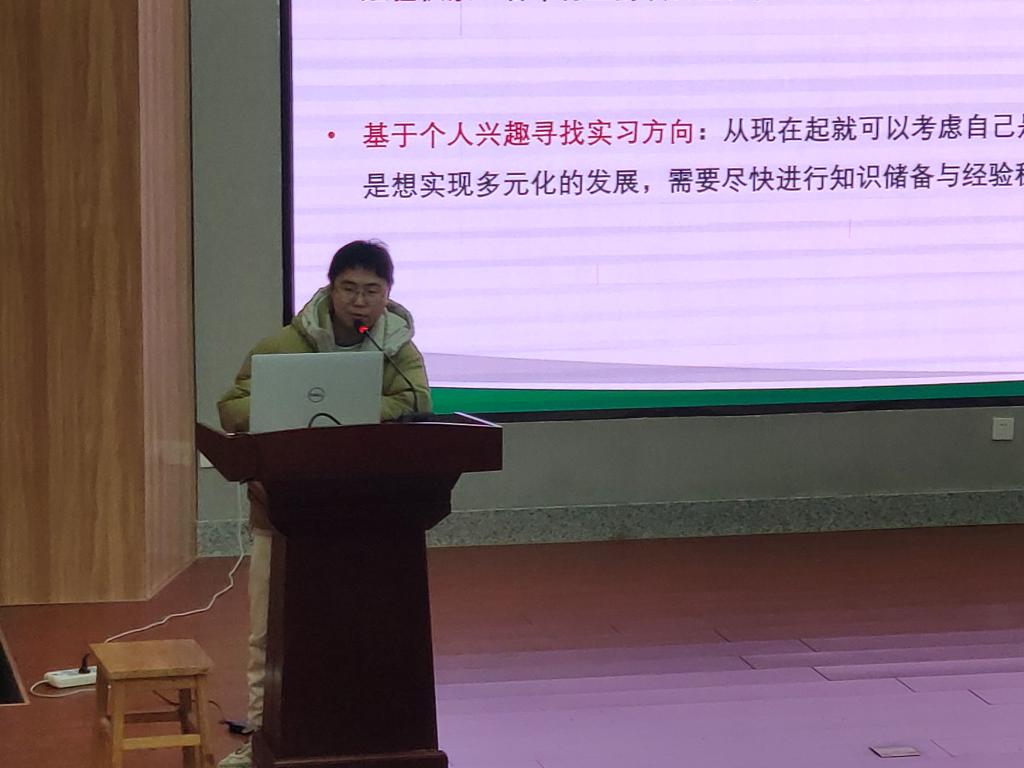 周俣轩在求职就业经验分享环节当中,围绕“要不要以专业为导向找工作”为核心,向在座研究生分别介绍了其在求职过程中每一阶段的心得。她围绕自身的基本情况、考试经历和经验总结三个部分进行分享,并分享了三点经验:一是准备简历时要突出优势,有重点的针对不同岗位进行准备;二是全面关注招聘信息;三是多积累面试经验。她指出,训练面试能力时要注意多练习,同时,找有经验的老师进行点评也十分重要。