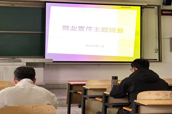 2023级林业专硕1班举办了一场以“携手共赢,梦想起航”为主题的就业主题班会。本次班会旨在了解同学们就业方向,帮助同学们了解当前就业形势。班会最后,同学们积极填写了学院研究生生涯规划调查问卷,表示希望通过调查问卷为学院开展就业指导工作提供参考,也希望学院通过调查问卷了解同学们的职业生涯规划,从而进行针对性指导。