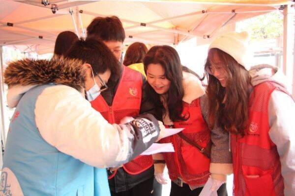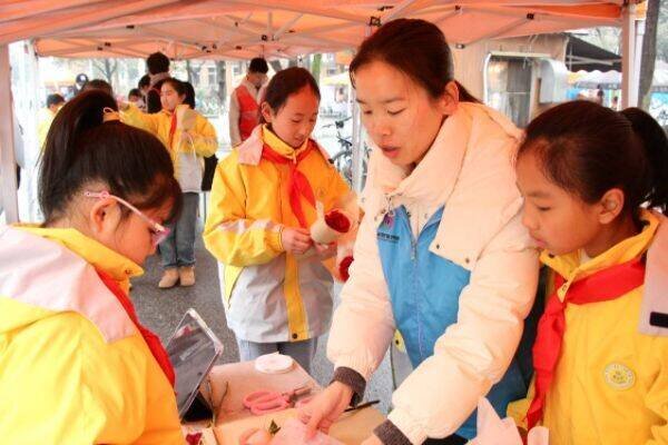 送走了孩子们,活动仍在持续进行。在志愿者的积极招揽与热心鼓励下,许多同学选择挑战自我、尝试答题,均顺利通关并体验了手扎花束的乐趣。来自茶学2201的志愿者蒋玉洁每递出一支花,都会为同学送上一句“祝你快乐”的祝福,春日的温暖与期待于志愿服务中氤氲在同学们的欢声笑语间。