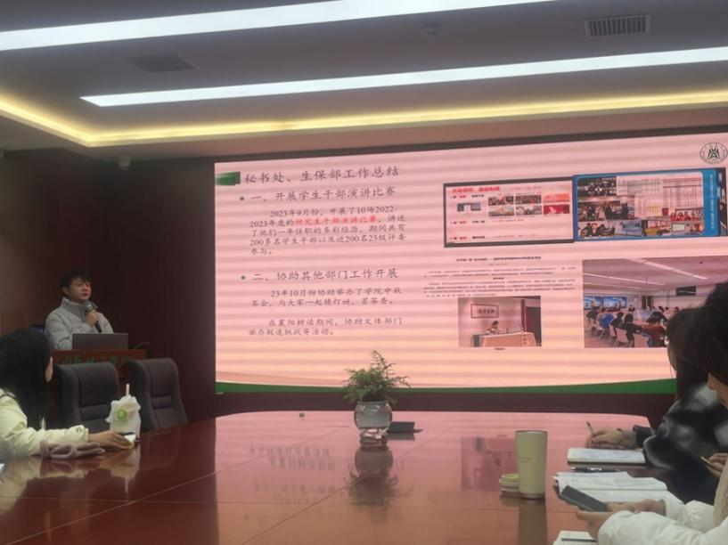 秘书处和生保部总负责人李贵华从开展学生干部演讲比赛、协助其他部门工作、学生组织例会的组织与筹备三个方面进行了汇报与总结,并与参会干部分享了学期工作计划。