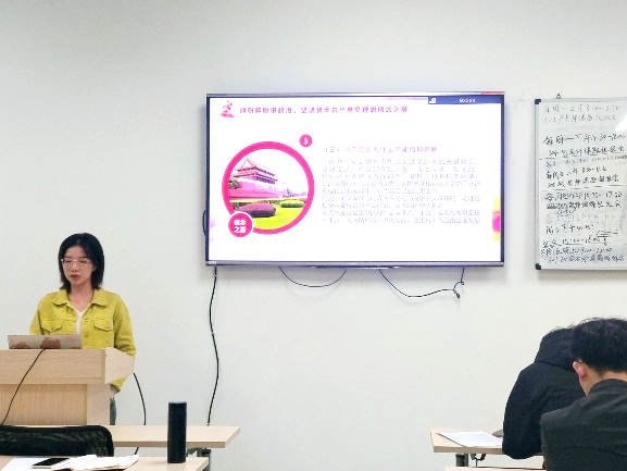 随后,周荣悦同志强调了共产党员不能信教,并解读了共产党员不能信教的原因。紧接着,周荣悦同志带领支部成员学习了2024两会新词、热词,如“新三样”、“新质生产力”等,促进了支部成员对时事政治的认识和思考。