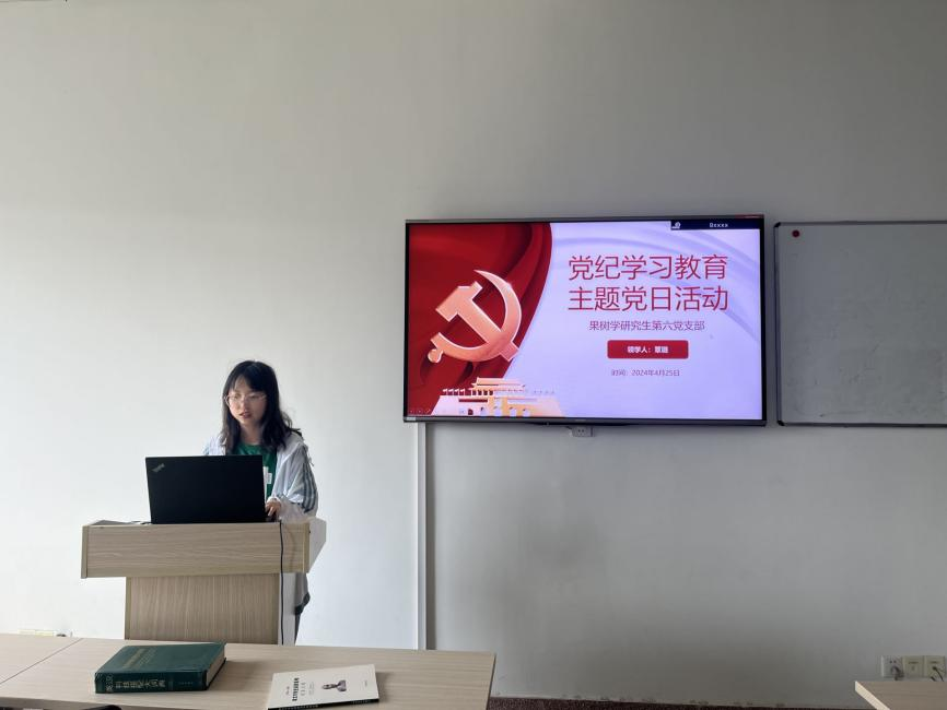 果树学研究生第五党支部开展党纪学习教育主题党日活动(何星怡 摄)