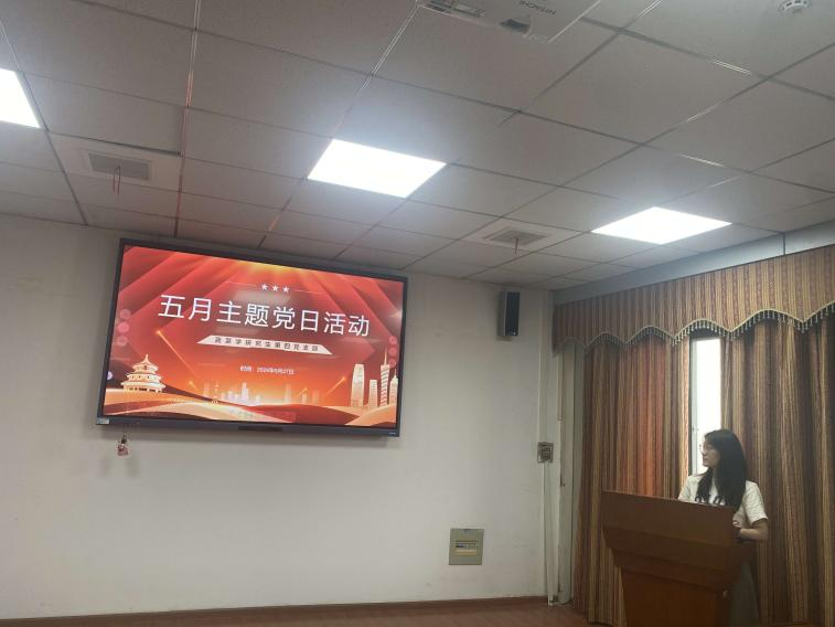 首先,戎子怡同志带领大家学习了《中国共产党纪律处分条例》,支部全体成员学习了习近平总书记关于党的建设的重要思想。