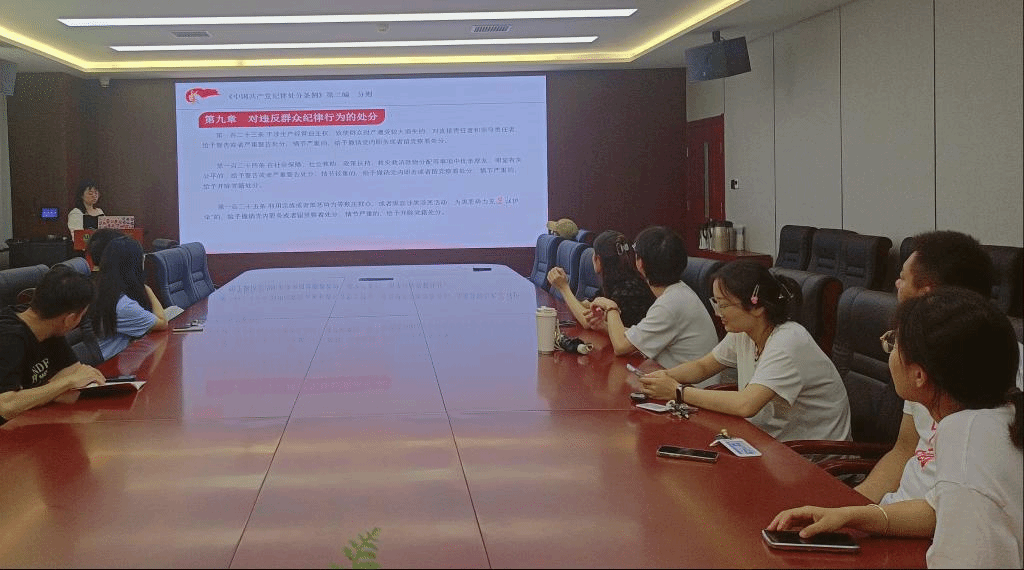 党支部书记严玉阳同志讲授了“党的六大纪律”主题党课。“党的六大纪律”即政治纪律、组织纪律、廉洁纪律、群众纪律、工作纪律、生活纪律。严玉阳谈到,党的纪律始终与党的事业相伴相随,并随着党的事业发展而发展、变化,完善、规范。严玉阳同志提到,2023年12月对《中国共产党纪律处分条例》的修订沿用“六大纪律”提法,并做了充实完善。“六大纪律”是《条例》的重要部分,也是我们要重点学习把握、逐条对照检查的内容。她强调,《中国共产党纪律处分条例》从第六章到第十一章共106条,我们应深刻认识到,这106条既是对党员干部的警示和约束,也是帮助和保护。党纪是党员干部最坚强的后盾。