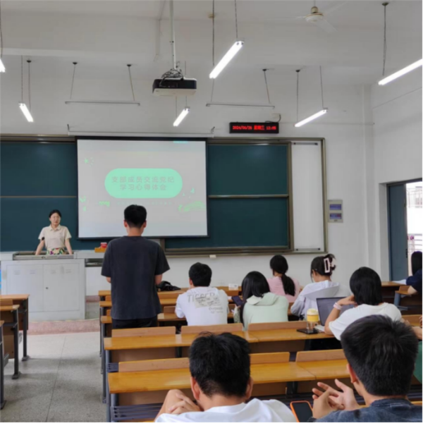 在本次主题党日活动中,郭艺佳同志带领大家学习了习近平总书记第十四次集体学习时的重要讲话精神以及党纪相关内容。
