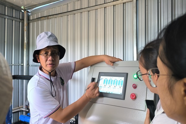 第一站,团队成员跟随刘老师来到广西壮族自治区农业科学院里建基地,对盆栽斗笠系统水肥一体化安装进行考察验收。期间,刘老师对盆栽斗笠的优点及水肥一体化如何规范使用进行了精彩讲解。通过本次考察学生们对盆栽斗笠系统产生了浓厚兴趣,对其未来发展充满信心。