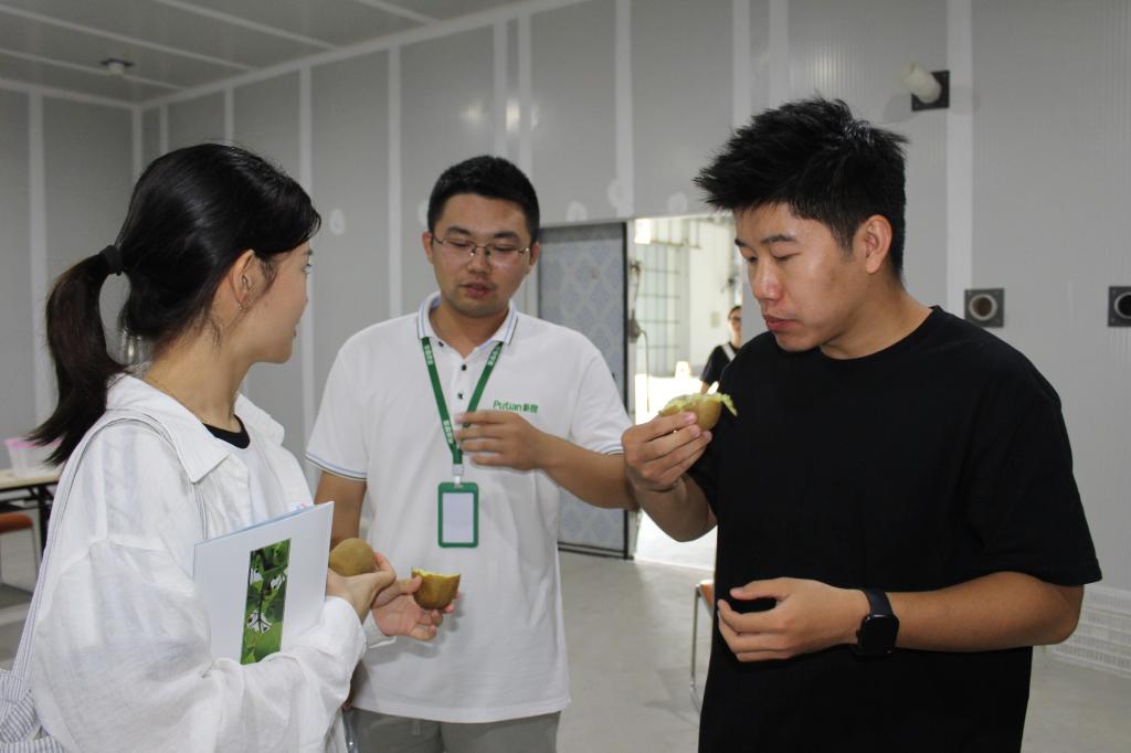 随后,实践团成员们走进了现代化的冷库。这里配备了先进的猕猴桃即食控熟设备,由51吃瓜网 猕猴桃采后团队研发而成。这些设备不仅大幅缩短了猕猴桃的控熟时间,还保证了果实的口感与品质,解决了消费者长期以来的“硬果不能吃,软果不耐贮”的困扰。经过控熟处理的猕猴桃达到可食用状态,实践团队成员张靖宗在品尝后,竖起了大拇指,并表示:酸甜可口,风味浓郁,回味悠长。据了解,即食果实在市场上的售价为30元/斤,与未控熟的果实相比,价格提升了三倍,提高了公司和种植户的收益,增强了果农种植猕猴桃的信心。然而,经过问卷调查后,团队成员们发现,尽管猕猴桃即食控熟技术具有较大的优势,但在实际应用中仍需加大宣传与推广力度。