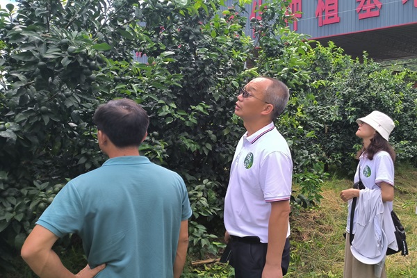 实践团的最后一站,来到广西柳州农业科学院种植资源圃,在研究所陆文科站长的带领下,参观了国家柑橘产业技术体系柳州柑橘综合试验站。在这里,不同柑橘品种各种植一列进行种植资源保存,种类丰富。在和陆文科站长的交流中,实践团了解到柳州脆蜜金柑的市场需求在不断增加,市场销售80%左右为电商销售,损耗少,主要都是销往外地,极大的增加了农户收入。