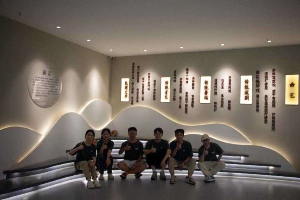 在馆内,团队成员首先参观了各类非物质文化遗产的展览,包括传统手工艺、民间艺术、地方戏曲和民俗活动等。馆内的工作人员热情地为大家讲解了每一项展品的历史背景和文化内涵,特别是咸宁的传统剪纸和陶艺,展示了地方艺术家的精湛技艺和深厚的文化底蕴。