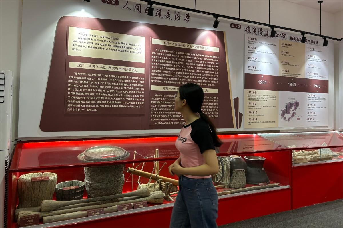工作人员讲解梅山革命斗争历程