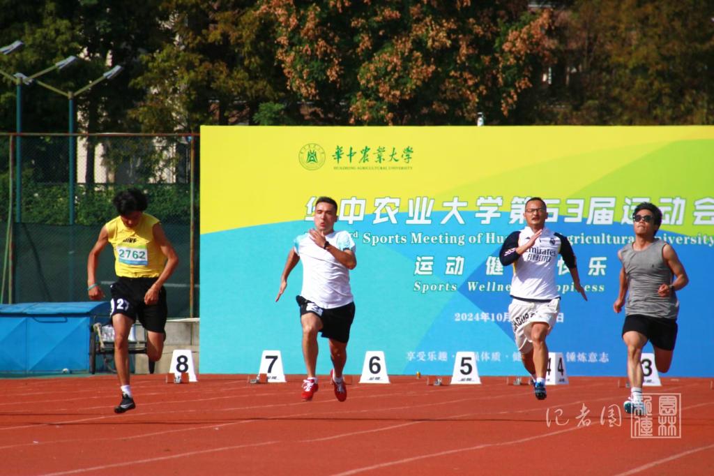 运动员在教职工男子100米决赛中荣获第三名