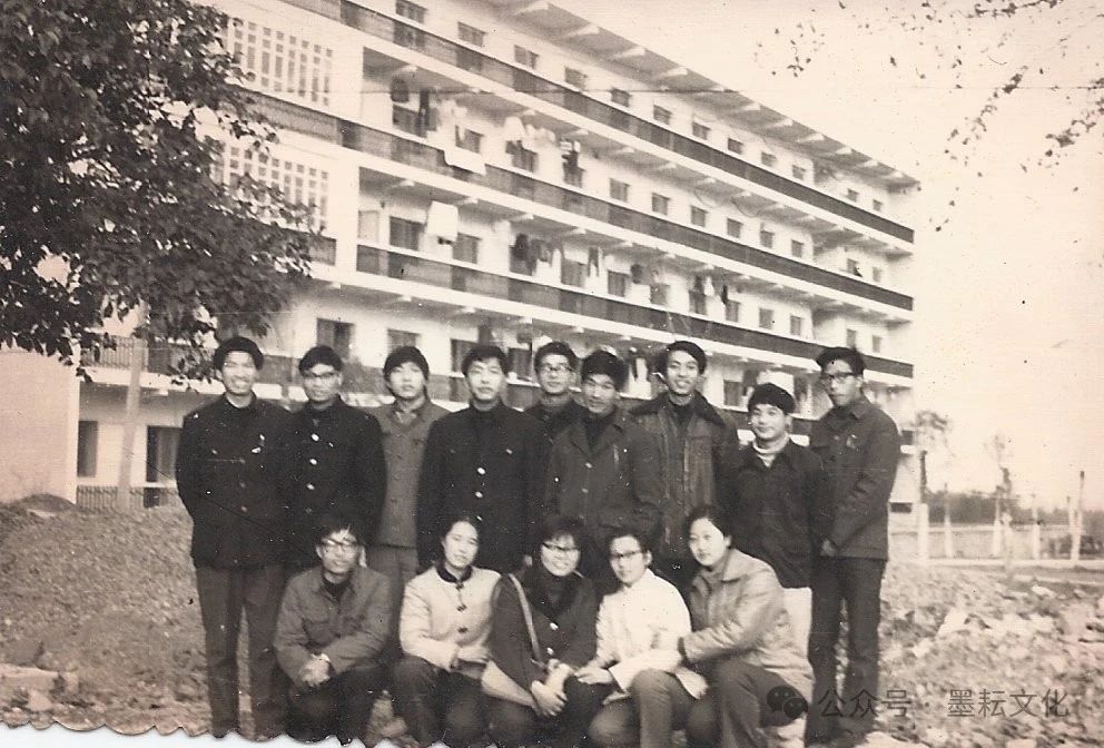 园艺系三届研究生合影,背景为华农研究生楼,邓占鳌为前排左一(1984)