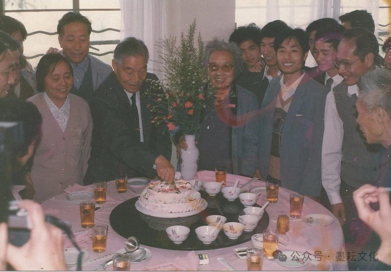 1990年11月广州国际柑橘学术讨论会期间,正值章先生86年寿辰。图为章先生、管奶奶与众弟子庆贺生日。邓占鳌为管奶奶右边的这位。