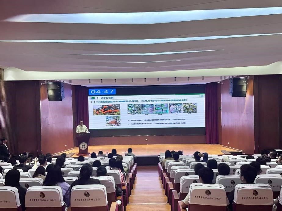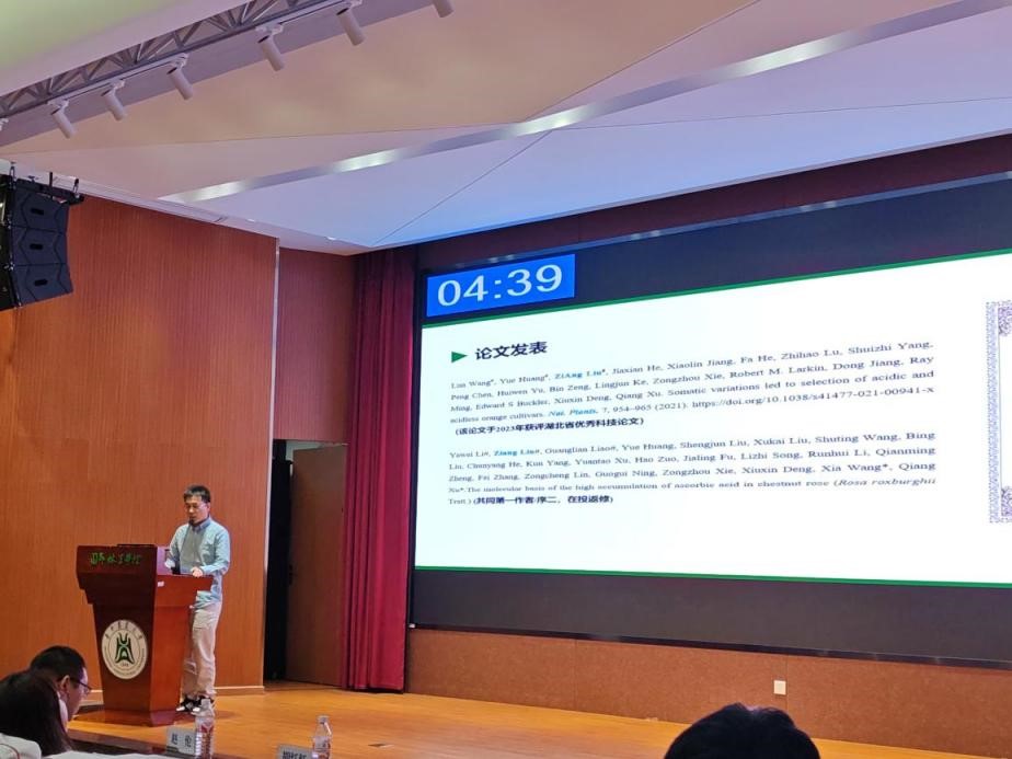 蔬菜学博士孙小梦介绍了TCP转录因子调控马铃薯块茎形成的功能和机制研究,拓展了TCP家族基因的功能角色,为TCP在作物改良中的应用提供了新思路。果树学博士宋立志介绍了柑橘基因组变异挖掘及其在甜橙芽变中的应用研究,对甜橙相比其他柑橘更容易发生芽变以及其中的驱动因素有重要研究意义。果树学博士何政辰介绍了乙烯和脱落酸促进柑橘果皮着色的分子机制研究,对研究发现绿色安全的柑橘果实促色方法起到了重要推进作用。果树学博士刘子昂以“甜橙为什么可酸可甜?--影响果实酸味的体细胞变异”为题,主要介绍了甜橙是研究体细胞变异的模式物种,构建了柑橘家族质量最好的参考基因组,为高质量体细胞变异的检测奠定基础,开发了适合甜橙芽变群体的大数据分析方案,从遗传和基因功能上验证转座子对甜橙果实酸度的影响。
