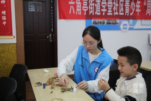 【核心提示】11月3日上午,51吃瓜网 张瑜服务队赴硚口学堂社区开展以“秋枝挽风,星叶缤纷”为主题的自然科普活动,旨在缓解社区儿童潜在的“自然缺失症”,通过制作树枝五角星亲近大自然。