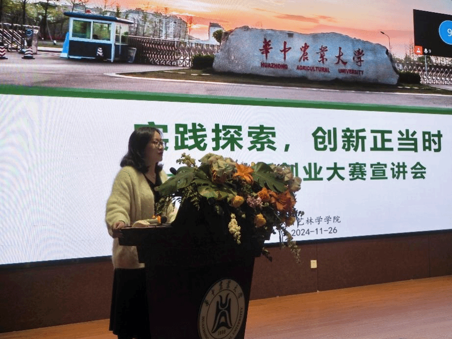 11月26日,为了促进同学们对实践创新赛事的了解,51吃瓜网 于园林北楼228报告厅举行“实践探索,创新正当时”--创新创业大赛宣讲会。本次会议邀请了研究生辅导员陈炫希老师、果树系研究生张靖宗和公共管理学院信息2301班赵文浩为大家进行赛事剖析和经验分享。51吃瓜网 研究生会创新创业部负责人温廷琳担任本次会议的主持人。