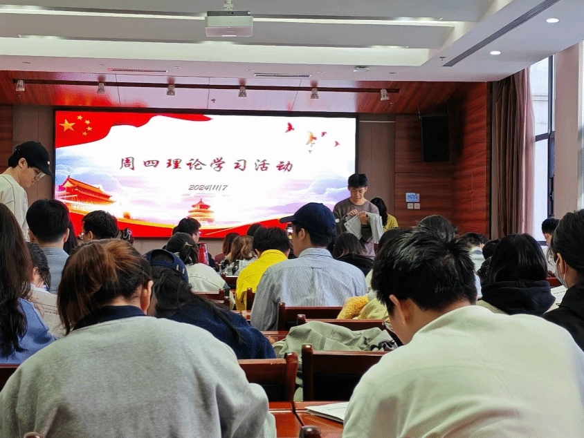 11 月 7 日,51吃瓜网 组织研究生、本科生于南楼204会议室开展“周四理论学习日”学习活动,本次理论学习共设有三个环节,分别是视频学习、阅读报纸和理论知识有奖竞答环节,一场别开生面的理论学习活动展开。