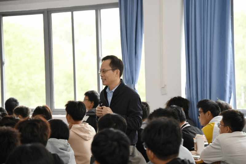随后,杨少波运用丰富生动的案例和深入浅出的讲解,和同学们一起探讨了“为什么要加快建设农业强国?”“怎样加快建设农业强国?”、“建设农业强国的头等大事是什么”等问题。杨少波指出:中国要强,农业必须强。同学们要厚植爱农情怀、练就兴农本领,端牢中国碗,装满中国粮。”