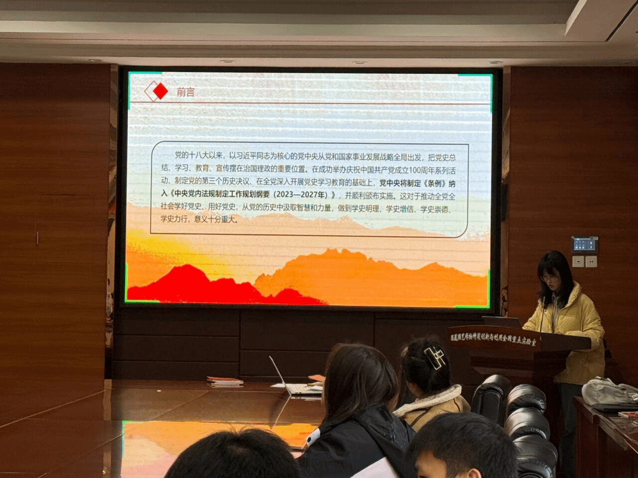 在理论学习环节,纪律委员张新阳带领党支部成员共同学习了《党史学习教育工作条例》的主要内容和精神。通过学习,党员们深刻认识到党史学习教育的重要性,明确了作为党员应承担的责任和使命。大家纷纷表示,将把学习成果转化为实际行动,以更加饱满的热情投身到学习和科研中。
