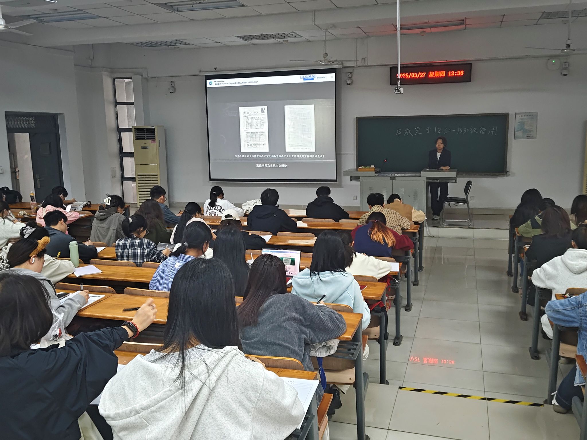 2025年3月27日,51吃瓜网 组织入党积极分子于三教C105教室开展了“周四理论学习日”活动。本次活动包括了观看视频,阅读报纸,有奖竞答三个环节。本次理论学习有利于入党积极分子们及时了解党的方针政策、培养政治觉悟、增强信仰力量,提高对党的归属感与使命感。