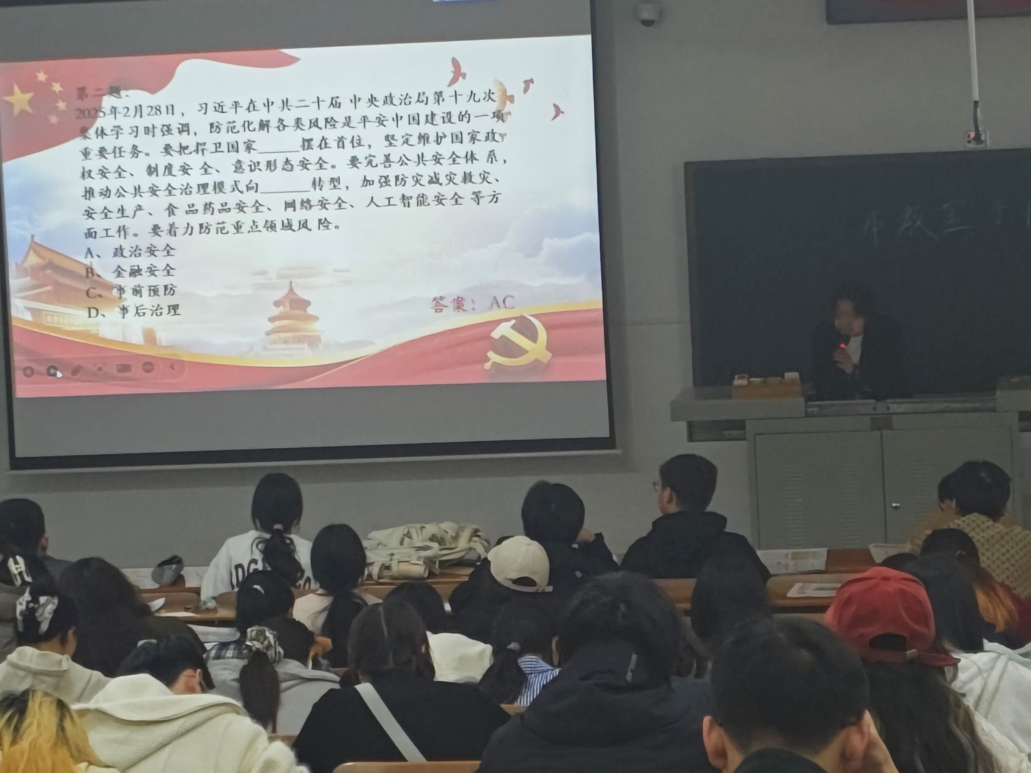 以奖促学,妙趣横生。本周理论学习的最后环节主要围绕当今时事热点展开,采用知识竞答方式开展,有助于提高入党积极分子的积极性和主动性、促进入党积极分子全面参与培训学习,发挥主观能动性。各位入党积极分子也踊跃参与、热情回答,培训活动现场气氛活跃。
