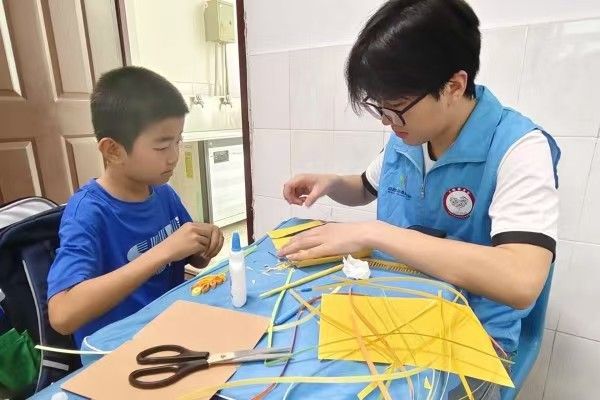 手工制作环节成为情感表达的舞台。在园林2401班黄潇等志愿者的指导下,孩子们用衍纸技艺制作麦穗贺卡。黄色纸条卷成饱满麦粒,绿色纸条化作舒展叶片,稚嫩的小手精心拼贴出对母亲的感恩。活动现场洋溢着温馨氛围,每张贺卡都凝聚着传统文化与现代情感教育的双重意义。