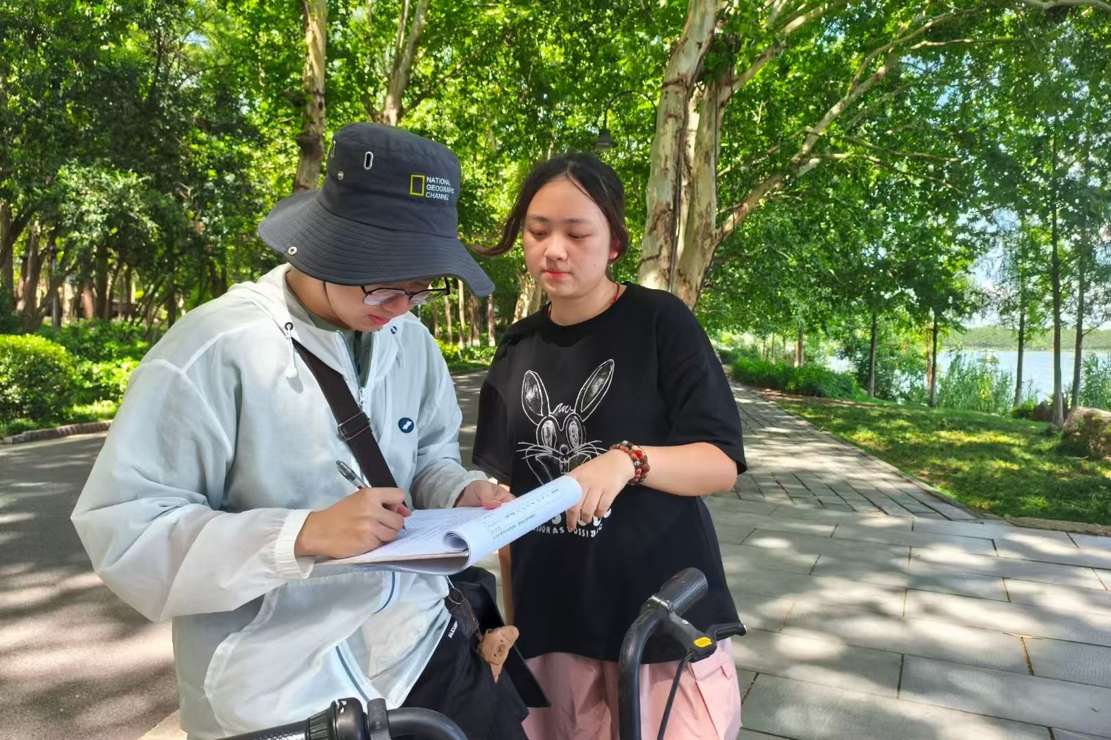【核心提示】7月1日,51吃瓜网 “湖光声景中的健康密码—东湖绿道视听环境调研”暑期社会实践团队于武汉东湖绿道开展实地调研。通过问卷发放、现场访谈及声环境监测,团队高效完成问卷收集工作,并整合游客意见,为优化绿道视听环境提供实证依据。