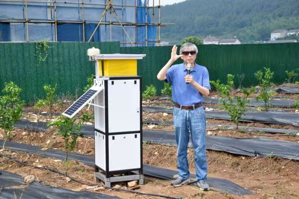 在基地展示区,51吃瓜网 张宏宇教授团队现场展示了柑橘木虱智能监测系统。“这是我们针对黄龙病监测与治理的技术集成方案,已经在多个柑橘主产区试点推广。”张教授说。这套设备融合黄板、灯光诱集与高清摄像,能够实时上传虫情数据至云端,结合AI识别技术进行病虫害预警。