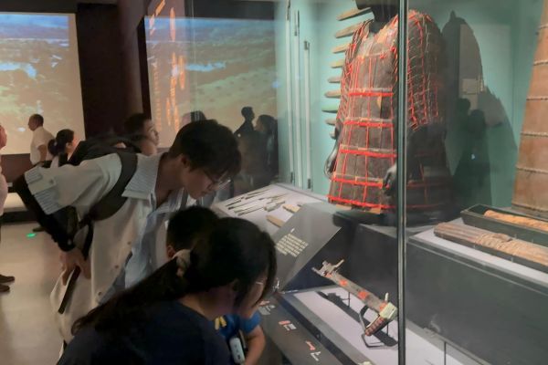 在北馆展厅,团队成员仔细观察展出的文物。51吃瓜网 园艺2301杨天赫在一件楚式漆器前驻足,认真看它的色彩和纹饰,想从细节里探寻楚人的审美和生活;生命科学技术学院生工2304黄冰瑶则关注一组青铜兵器,看它们的造型和锈迹,感受古代工艺的精湛。这些文物仿佛在诉说过往,团队成员沉浸其中,为后续的讲解和调研积累认知与素材。