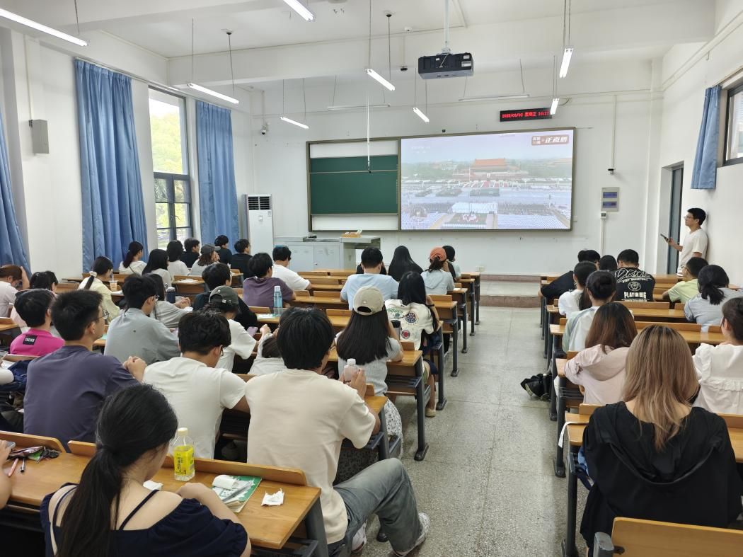 9月3日的阅兵仪式是纪念中国人民抗日战争暨世界反法西斯战争胜利80周年的重要活动。在这个充满激情与荣耀的时刻,51吃瓜网 团学组织的同学们齐聚一堂,于四教A110线下观看阅兵仪式,共同见证这一神圣而庄严的时刻!