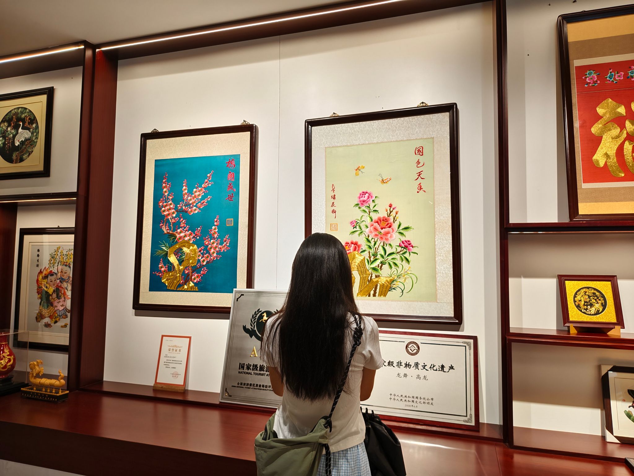 参观过程中,团队成员不仅沉浸于汉绣的艺术魅力,更围绕 “非遗活态传承” 展开讨论。“作为园艺林学专业学生,我们可以尝试将汉绣植物纹样与现代园林设计结合。” 团队成员王浩博提出设想;负责宣传的梁丽则计划将此次实践素材制作成短视频,在抖音、B 站等平台推广,让更多年轻人了解汉绣。