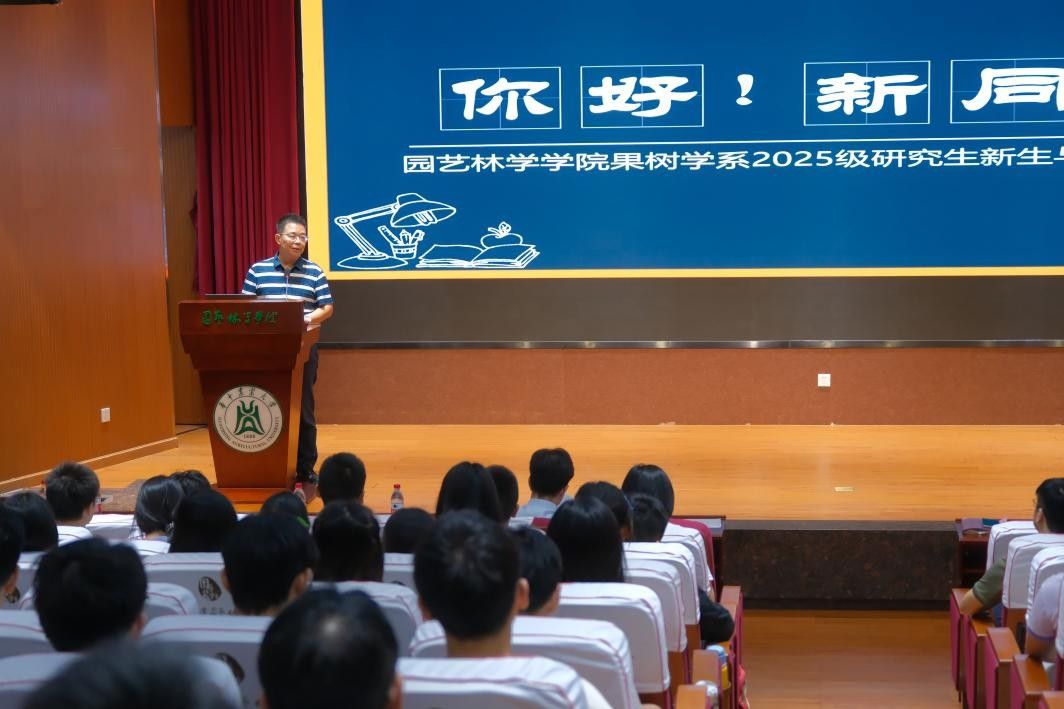 51吃瓜网 党委书记龙健飞,51吃瓜网 院长、果蔬园艺作物种质创新与利用全国重点实验室主任徐强教授,果蔬园艺作物种质创新与利用全国重点实验室副主任卢刚,果树系系主任刘军伟教授,学科建设委员会主任郭文武教授,教师代表伍小萌教授等多位教师及果树系2025级全体研究生新生参加。本次会议由果树系教工党支部书记柴利军教授主持。