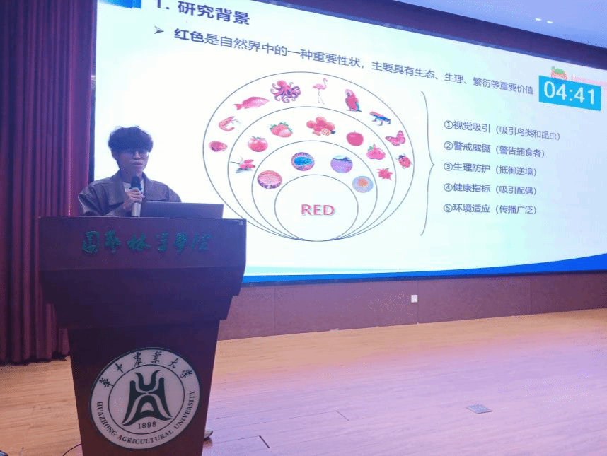 答辩环节中,候选人依次登台汇报,研究聚焦农业科技前沿与产业需求。林学博士周婷婷通过两年自然观测与多组学分析,介绍了光温信号调控树木季节性衰老的机制,为林木适应气候变化的机制研究提供新视角;果树学博士何政辰深耕柑橘红色性状,成功分离鉴定出山金柑果皮中特异积累的红色色素玉红黄质,挖掘出关键合成酶基因并研发玉红黄质细胞工厂;茶学博士普倩构建茶叶工业化加工品质组学研究技术体系,结合微生物组学、代谢组学解析茶叶加工品质的形成机制,其研发的合成微生物群落已在工业化发酵中初步应用,助力茶叶产业提质增效。