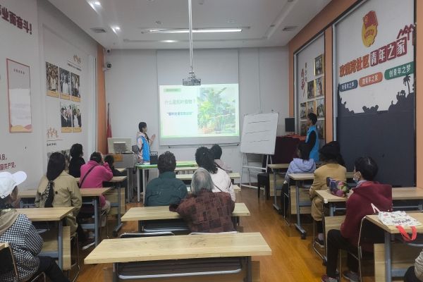 待阿姨们悉数到场后,主持人林学2401班叶紫彤以一个亲切的问题开启了本次绿色之旅:“阿姨们,大家家里都有没有种绿萝呀?”阿姨们纷纷点头,并主动与身边的朋友分享起自己的种植经历。紧接着,主持人用生动的案例讲解了绿萝作为“家庭绿植首选”的各样优点并分享了许多实用的家庭养护技巧。
