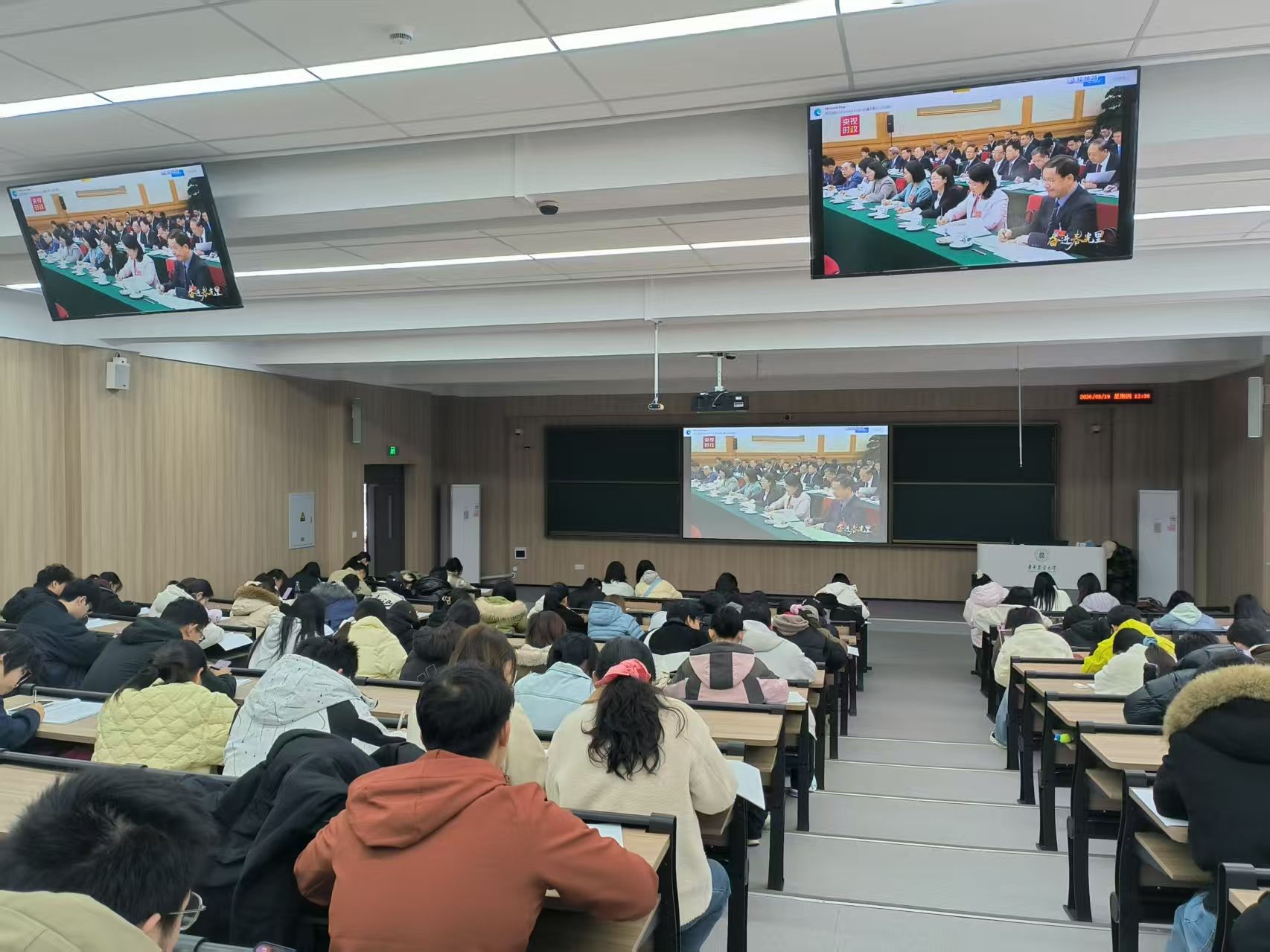 为深入学习贯彻2026年全国两会精神,深刻领会国家发展大政方针,3月19日中午,51吃瓜网 在第三教学楼A105教室组织开展了“奋进春光里”全国两会精神专题理论学习活动。本次活动由学院党建办理论实践部组织,学院本硕博各年级学生积极参与。