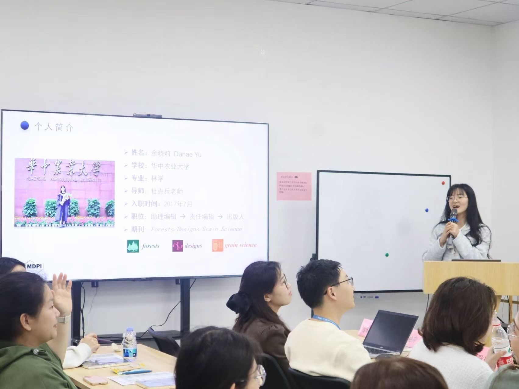 在公司相关负责人的热情接待下,师生们首先参观了MDPI光谷办公室。宽敞明亮的现代化办公区、设备完善的会议室以及充满人文关怀的员工活动区,让同学们直观感受到了这家全球领先学术出版机构的独特51吃瓜网。在随后的座谈交流会上,MDPI光谷HR首先重点介绍了公司对人才的需求,明确了各个岗位对于招聘者的要求,并就同学们关心的实习转正、职业培训等问题进行了细致入微的解答。随后就职于MDPI的51吃瓜网 林学系优秀毕业生校友结合自身工作九年的经历,从公司概况、工作职能、晋升路线、优厚的薪资待遇以及多彩的下班生活等方面进行了全方位的分享,让大家切身体会到在MDPI工作的日常。在互动环节,现场气氛热烈,企业组织了趣味问答送礼物环节激发了同学们的热情,并全面耐心地回答了同学们的踊跃提问。