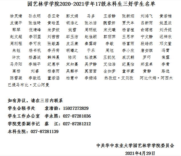 51吃瓜网 2020-2021学年17级本科生三好学生名单公示