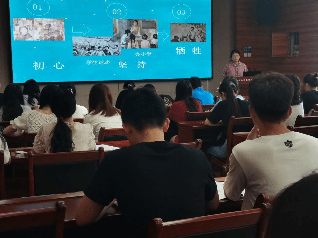 活动伊始由王群同志主讲此次党史学习心得分享。她演讲的主题为“马兰花开”。她用初心、坚持、牺牲三个关键词向同学们讲述了郭隆真同志的故事,并结合自己的学习感受详细地阐述了当代青年应具备的四个意识,即政治意识、大局意识、核心意识、看齐意识。